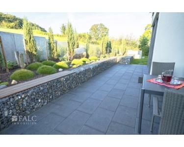 Stunden im Freien ein. Die großzügige Terrasse öffnet sich zum weitläufigen Garten, dessen
