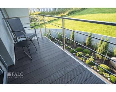 Die angegebene Wohnfläche beinhaltet anteilig 25 % der Terrassenfläche gemäß der gängigen Wohnflächenverordnung (WoFlV). Die Terrasse trägt somit teilweise zur Gesamtwohnfläche bei.