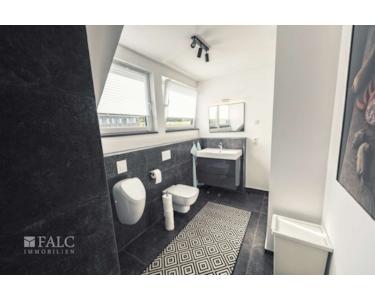 Das gesamte Haus ist mit hochwertigen Fliesen ausgestattet und verfügt über eine gehobene Ausstattung. Beheizt wird es durch eine effiziente Buderus Luft-Wärmepumpe mit Fußbodenheizung. Eine Entkalkungsanlage sorgt zusätzlich für eine hohe Wasserqualität im gesamten Haus. Hier wurde wirklich an alles gedacht! Der praktische Hauswirtschaftsraum mit direktem Zugang zur Garage sorgt für höchsten Wohnkomfort im Alltag. Das elektrische Garagentor lässt sich bequem per Fernbedienung steuern, und eine Wallbox-Vorbereitung für das Laden eines Elektrofahrzeugs ist bereits vorbereitet.