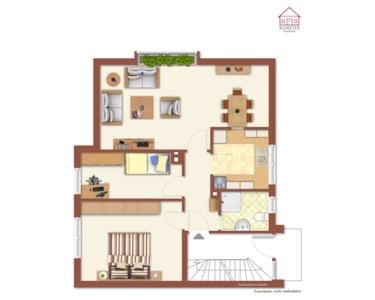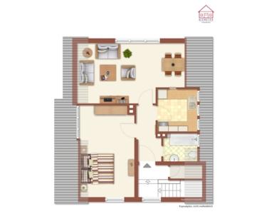 Das Obergeschoss ist identisch von der Aufteilung her. Hier haben wir eine Wohnfläche von ca. 59 Quadratmetern.