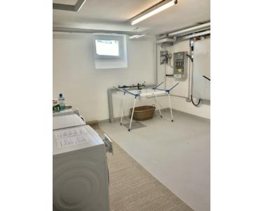 Zur Wohnung gehören ein großzügiger Keller und ein gemeinschaftlicher Waschraum je 1 Anschluss für Waschmaschine und Trockner pro Wohneinheit.