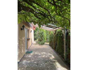 Zum Verkauf steht ein idyllisch gelegenes Einfamilienhaus mit einem nicht einsehbaren Grundstück. Die gepflegte Außenanlage mit Gartenbegrünung und gepflasterten Wegen lässt Sie in Ihr Familienglück eintauchen. Neben der tollen Poolanlage können Sie Ihre Seele auf der überdachten Terrasse baumeln lassen. Die Aufteilung der Räume und Außenflächen, die Lage und die freundliche Nachbarschaft machen dieses Haus perfekt für Familien mit Kindern. Das Grundstück ist ringsum mit einem üppigen Heckenbestand bewachsen, sodass Ihre Privatsphäre geschützt ist. Über die Toreinfahrt gelangen Sie zu Ihrem Carport, in dem zwei Pkw Platz finden, Für Gartengeräte gibt es einen direkt anschließenden Schuppen.