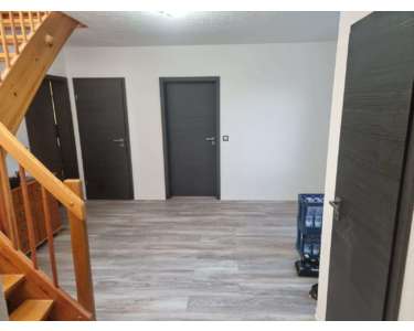 Anfang 2024 hat der Eigentümer die Wände weiß verputzt und neue Böden verlegt. Hier wurde vor allem auf ein pflegeleichtes und langlebiges Material in Holzoptik mit ICB Isocore Trägerplatten gesetzt. Außerdem wurden alle Türblätter und -Zargen erneuert.