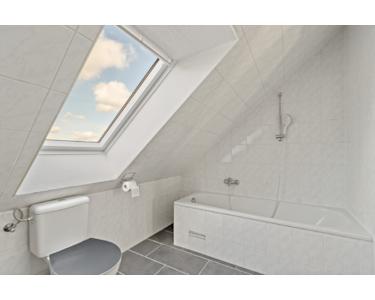 Das Badezimmer ist kompakt, verfügt jedoch über ein Fenster und ist mit einer Badewanne ausgestattet.