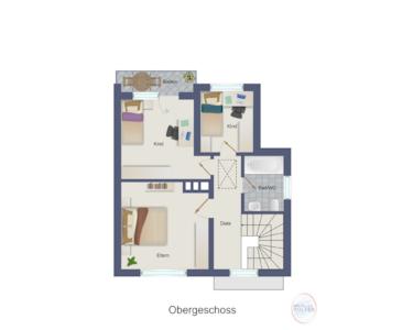 Obergeschoss: Schlafzimmer, 2 Kinderzimmer, Wannenbad