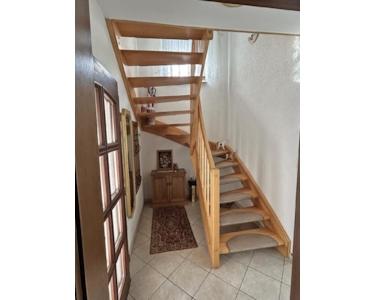 Dieses großzügige Zweifamilienhaus wurde ursprünglich um 1958 in massiver Bauweise als Einfamilienhaus errichtet und im Jahr 1986 durch die Firma Engelhardt aus Erbach in hochwertiger Holzständerbauweise erweitert. Dadurch entstanden zwei vollwertige Wohneinheiten mit insgesamt rund 165 m² Wohnfläche.