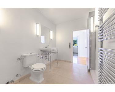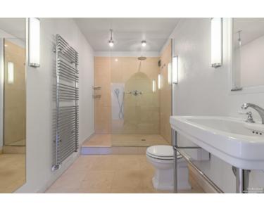 + Bad: Stilvoll ausgestattetes Badezimmer mit Regendusche, Fußbodenheizung und eleganten Details