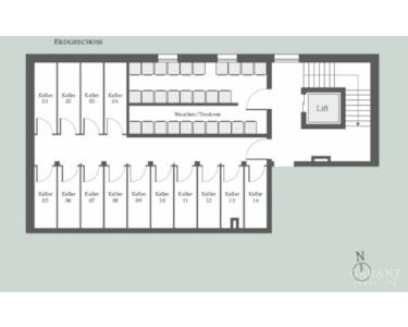 Weitere Keller- und gemeinschaftlich nutzbare Räume in den Untergeschossen erweitern das Angebot.