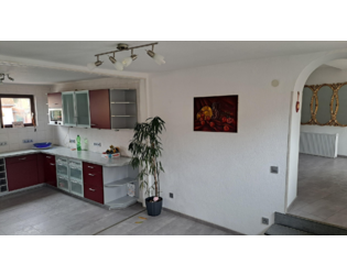 Eine zentral gelegene, modern ausgestattete Einbauküche und Essbereich, die von beiden Wohneinheiten genutzt wird
