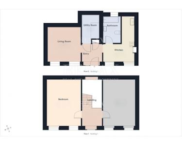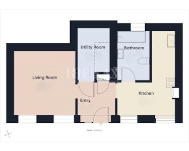 Das Haupthaus mit einer Wohnfläche von 85 m² erstreckt sich über zwei Etagen. Im Erdgeschoss befinden sich ein Wohnzimmer, eine Küche mit Essbereich, ein Flur, ein Badezimmer und ein Abstellraum. Über eine Innentreppe gelangt man ins Obergeschoss, wo sich zwei geräumige Schlafzimmer befinden. Das Gebäude ist nach Südwesten ausgerichtet, was für reichlich Tageslicht sorgt.