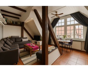 Diese charmante 3-Zimmer-Dachgeschosswohnung befindet sich im 2. Obergeschoss eines liebevoll modernisierten Fachwerkhauses und verbindet historischen Charakter mit zeitgemäßem Wohnkomfort.