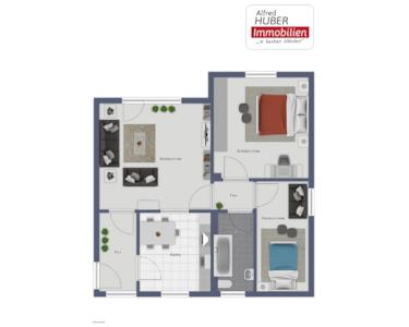 Die Wohnung wurde im Jahr 2010 umfassend saniert und präsentiert sich in einem soliden, gepflegten Zustand. Der funktionale Grundriss umfasst ein Wohnzimmer, ein Schlafzimmer, ein Kinderzimmer, eine separate Küche sowie ein Tageslichtbad mit Badewanne. Die klare Raumaufteilung spricht eine breite Mieterzielgruppe an und sorgt für eine nachhaltig gute Nachfrage.