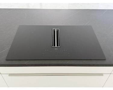 Design-Einbauküche: Die offene Einbauküche ist mit hochwertigen Elektrogeräten der Marken AEG und Siemens ausgestattet, darunter eine Kühl-Gefrierkombination, ein Induktionskochfeld mit Dunstabzugshaube sowie ein Geschirrspüler.