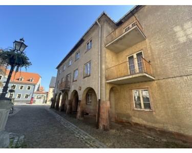Das Gebäude besteht aus einem Kellergeschoss, welches aufgrund des Höhenvorsprungs im Gelände von der Gartenseite aus ebenerdig betreten werden kann, einem Erdgeschoss, zwei Obergeschossen und einem teilausgebauten Dachgeschoss. Das bestehende Treppenhaus erschliesst alle Geschosse. Der ehemals als Polizeistation genutzte Bereich im EG wird so wie auch das Treppenhaus vom Arkadengang aus erschlossen, liegt jedoch als einziger Teil ebenerdig zum Marktplatz, die Wohnung im EG iegt ca. einen halben Meter höher. In den Obergeschossen befinden sich je Geschoss 2 Wohnungen, so dass das Gebäude insgesamt über 6 Nutzungseinheiten verfügt. Zur Zeit steht das Gebäude leer.
