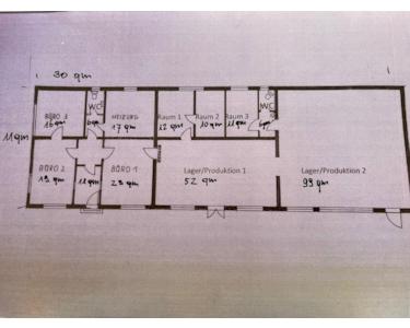 - Hall (commercial warehouse / Produktion), 100 qm, 440,-- rent net.