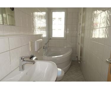 - Bad mit Eckbadewanne und Handtuchheizkörper