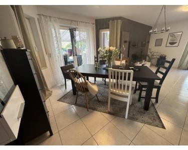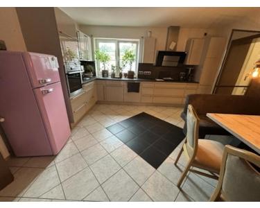 Platz hat man nicht nur im Wohn- Essbereich, auch die Küche ist geräumig und mit der hellen Einbauküche ein echter Blickfang.