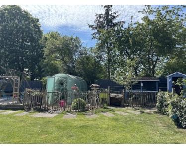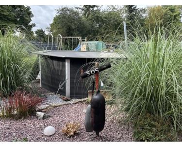 Der Garten ist fast nicht einsehbar und mit größtenteils Rasenfläche, Hecke, Sträucher, sowie Ziergehölzen bepflanzt.
