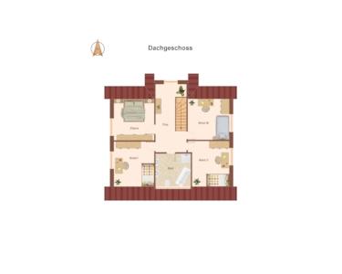 Hier gibt es ein Elternschlafzimmer und drei Kinderzimmer, sowie ein großzügiges Bad.