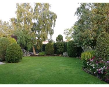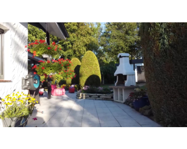 Hervorzuheben ist, dass der nach Süden ausgelegte Garten durch seinen tollen Baumbestand im Sommer absolut blickdicht ist. Hinter der großen Hecke befindet sich ein weiteres Grundstück, welches nicht bebaut werden darf, hier genießt man also absolute Ruhe.
