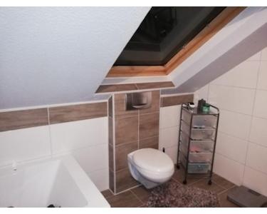Die Einliegerwohnung mit ca.75 m2 ist über einen separaten Eingang und Parkplatz nebst Garten im Außenbereich zu erreichen. Diese ist aktuell wie folgt aufgeteilt: Im Eingangsbereich befindet sich ein kleiner Flur mit Treppe zur Wohnung. Diese ist mit einem großzügigen Wohn- und Essbereich mit moderner Einbauküche und Zugang auf einen Balkon, einem Schlafzimmer, einer Empore mit Dachfenster und einem Badezimmer mit Badewanne und Dusche ausgestattet.