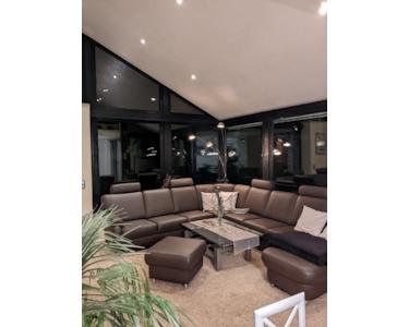 Die Einliegerwohnung lässt sich ohne großen Aufwand wieder dem Wohnhaus zuordnen. Auch eine Vergrößerung dieser Wohnung wäre ohne Weiteres möglich. Ebenfalls ist es Denkbar hier ein Gewerbe ( Versicherung, Office, Kosmetik, Nagelstudio etc) zu integrieren. Wohnen und Arbeiten unter einem Dach, dennoch gut getrennt voneinander.