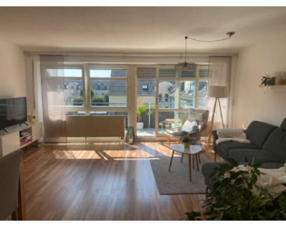 Über die Wohnungstür gelangt man in einen breiten Eingangsbereich, von dem aus man die anliegenden Zimmer (Büro/Schlafzimmer, Küche, kleines Bad mit WC, Dusche und Waschmaschine, Wohnzimmer) erreicht. Von dem nach Süden gerichteten geräumigen Wohn-/Esszimmer gelangt man auf den großen Balkon, der Platz für einen Essbereich aber auch eine Loungeecke bietet mit Blick in den Innenhof.