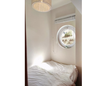 Die Schlafkoje kann durch eine Schiebetür vom Hauptraum abgetrennt werden. Im Hauptraum – dem Wohn- und Esszimmer – finden Sie einen Kamin für gemütliche Abende und einen Fernseher mit integriertem DVD-Player. Ein weiterer Ofen sorgt an kalten Tagen für ein angenehmes Wohlfühlklima, im Bücherregal können Sie stöbern. Die Geschichten warten bereits auf Sie.