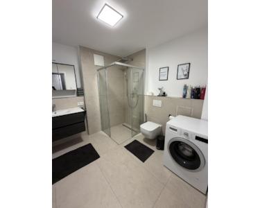 Die Wohnung verfügt über einen hochwertigen Vinylboden, elektrische Rollläden, Fenster mit Dreifachverglasung, Fenster in allen Schlafräumen und ein Badezimmer mit Dusche und WC. Ein Waschbecken inkl. Unterschrank und Spiegel ist bereits vorhanden.