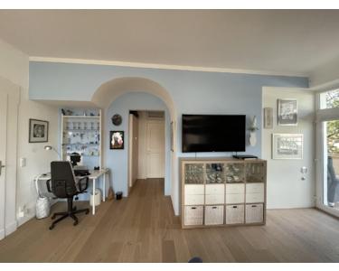 Die lichtdurchflutete Wohnung mit ihren Fenstern im Süden, Osten und Westen, der großen Terrasse, dem langen Balkon mit dem unverbaubarem Bergblick im Außen und die wohltuenden Raumhöhen von 2,88 m mit ihren Rundbögen und Nischen verleihen dieser großen Wohnung ein ganz außergewöhliches Ambiente!