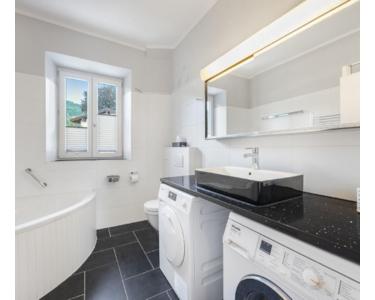 Im 2. Bad sind Miele WM und TR unter der Marmorplatte fürs Waschbecken eingefügt.