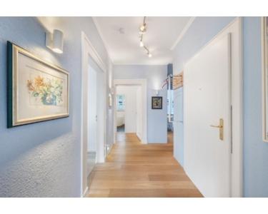 Der ca. 36 qm große, lichtdurchflutete Wohnbereich mit 2,9 m hohen Wänden und exklusivem EHAM Echtholzdielenboden schafft ein wohnliches und gehobenes Ambiente. Hochwertige Keramikfliesen in beiden Bädern, Gästetoilette und Küche, zwei Tageslichtbäder, eines mit Eckbadewanne, Dusche, WC, das andere mit großer Dusche, Waschbecken, WC und separatem Gäste WC mit Handwaschbecken.