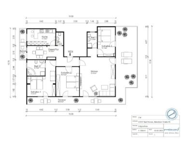 Der große Wohn- / Essbereich, die drei Schlafzimmer, zwei Bädern, einer weiteren Gästetoilette, einem Essraum und einer modernen Küche ermöglichen ein großzügiges Wohnen.