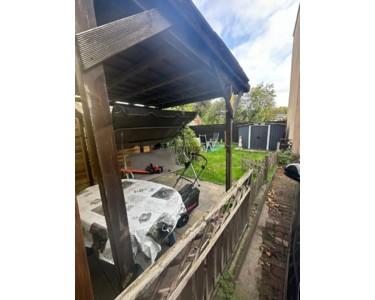 Ein echtes Highlight ist der Garten zur alleinigen Nutzung mit überdachtem Sitzbereich/Terrasse und einem praktischen Garten-/Geräteschuppen, ideal zum Entspannen, Grillen oder für zusätzlichen Stauraum (z. B. Fahrräder, Gartenmöbel).