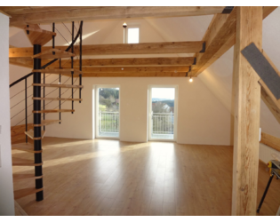 Wohnung in einem Bauernhausensemble. Großer Balkon mit Fernsicht über die Dächer von Wittendorf hinweg.