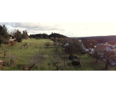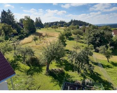 Oben am Hang gelegen, freie Fernsicht über die Dächer von Wittendorf hinweg.