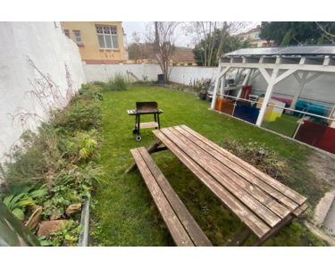 Zur Wohnung gehört ein großer Gemeinschaftsgarten mit eigener Terrasse, der kaum benutzt wird. Die WG wird nur an ein Personen vermietet, die bereit ist, sich zuverlässig und regelmäßig um die Gartenpflege zu kümmern. Zudem sind Haustiere nach Absprache erwünscht.