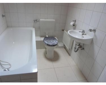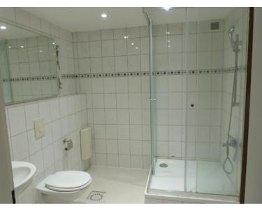Ein weiteres weiss gefließtes großes Bad mit Dusche, WC und Waschbecken befindet sich ebenfalls im Keller.