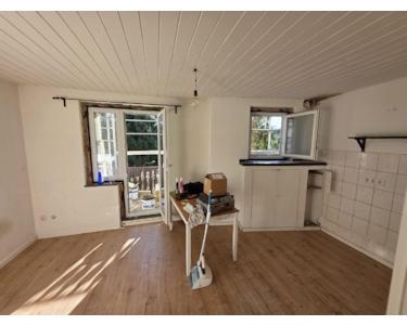 Die Wohnung verfügt über einen *offenen Wohn- und Essbereich mit integrierter Küche (ohne Einbauküche), ein **Schlafzimmer, ein **Badezimmer, einen **Flur* sowie eine *kleine Abstellkammer*.