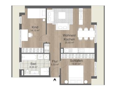 Moderne, energetisch kernsanierte und vor allem sehr helle 3-Zimmer-Wohnung im Dachgeschoss (2. Obergeschoss). Die Wohnung bietet auf knapp 70 m² einen durchdachten Grundriss mit großzügigem Wohn-/Ess-/Küchenbereich, Schlafzimmer, Kinderzimmer, modernem Badezimmer mit Dusche und Badewanne sowie praktischem Waschmaschinenplatz.