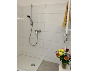 Komplett saniertes Bad mit großer Dusche und Waschmaschinen-Anschluß