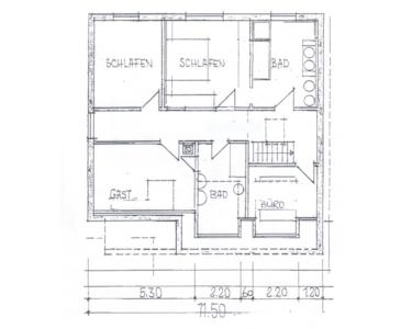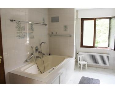 Im Obergeschoss befinden sich 4 Zimmer (seither als Schlafzimmer und Büro genutzt) und 2 Badezimmer, die jeweils mit Dusche, Badewanne, WC, Bidet und Doppelhandwaschbecken ausgestattet sind.