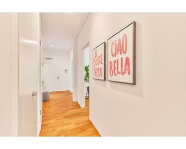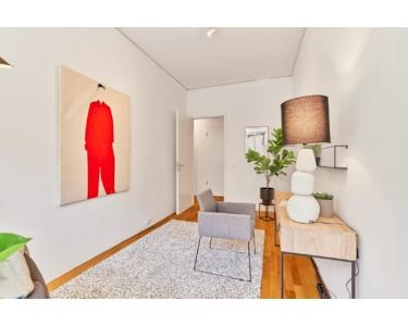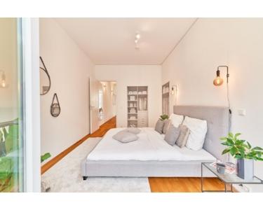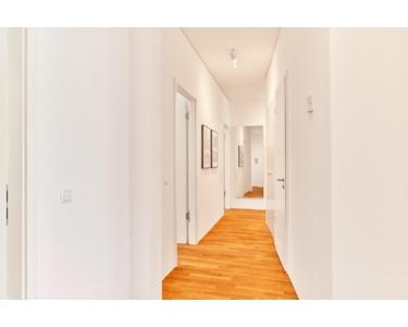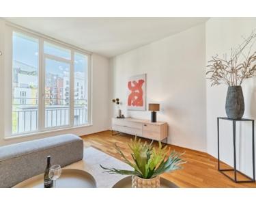 Coole, helle Wohnung die mit ihrem loftartigen Raumkonzept ist sehr großzügig konzipiert. Bodentiefe Fenster und eine großzügige Beleuchtung schmeicheln dem anspruchsvollem Raumkonzept = ist halt kein Standard. Die etwa 6 qm große schöne Terrasse bietet einen sehr schönen Blick in den ruhigen, weitläufigen, geschlossenen Innenhof. Der etwa 8 qm große Balkon erstreckt sich über die gesamte Wohnungsbreite und bringt die bodentiefen Fenster besonders zur Geltung. Außer in Küche und Nasszelle liegt überall Echtholzparkett. Mit den Bodentanks sind sie flexibel im Anschluss von Elektrogeräten.