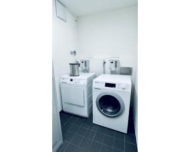 👉 Waschraum mit Geräten für Haushalt: Sie haben ein Bügelbrett mit Bügeleisen, Staubsauger sowie eine Waschmaschine und Trockner inklusive