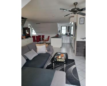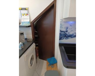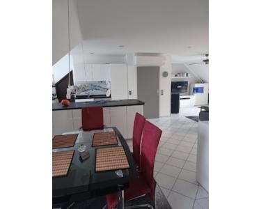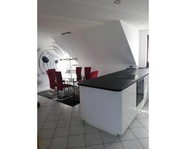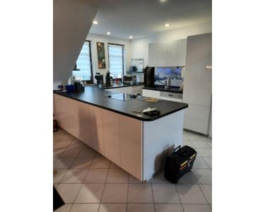 Sie betreten Ihre zukünftige Wohlfühloase über Ihren eigenen Eingang. Über die überdachte Loggia und begeben sich durch den kl. Flur, am Gäste WC vorbei, zum Mittelpunkt, der neuwertigen maßgefretigten Hochglanzküche, mit Kochinsel.
