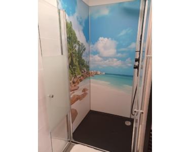 Sie können die bodenerdige große Massagedusche nutzen, oder Sie genießen Ihre Relaxbadewanne. Der mod. Durchlauferhitzer läßt sich gradgenau einstellen.