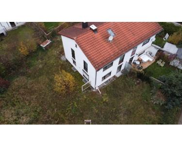 Die Fläche des Grundstücks beträgt 629 m2 und ist derzeit bebaut mit einer DHH (1957) mit ca. 97 m2 Wohnfläche im EG/OG, die zur Kernsanierung oder alternativ zum Abriss vorbereitet ist. Baukörper, Dach und Fenster sind in guter Qualität, der komplette Innenausbau ist erforderlich. Eine Erweiterung mit Aufstockung des Dachgeschosses, Ausbau des Kellers zum Wohnraum und/oder Ergänzung eines Anbaus oder Wintergarten zur erheblichen Vergrößerung der Wohnfläche sind auf dem großzügigen Grundstück jetzt oder später prinzipiell möglich. Eine Baugenehmigung für 250m2 Wohnfläche zzgl. 112 m2 Nutz- oder Zubehörfläche, liegt bereits vor.