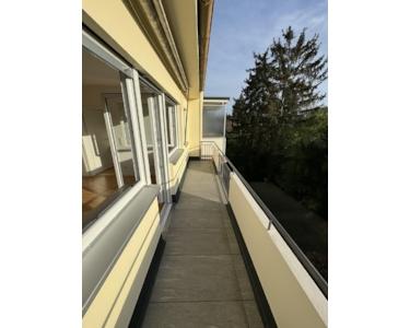 Die moderne Wohnung wirkt mit ihrem idealen Grundriss durch die vielen Fenster sehr hell und verfügt über einen sehr großen Sonnenbalkon, der einen wunderschönen Ausblick ins Grüne ermöglicht und mit einer Markise ausgestattet ist.