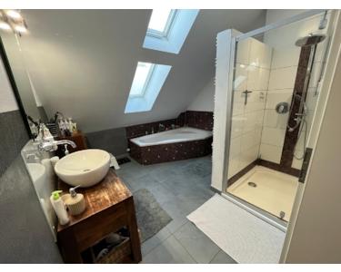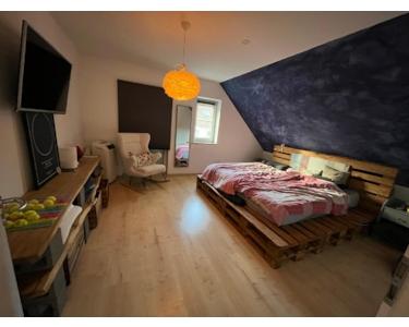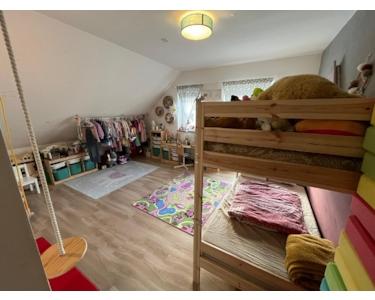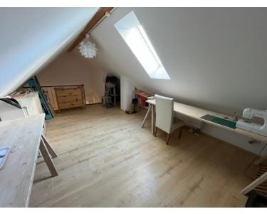 Über eine vollwertige Holz-/Stahltreppe erreichen Sie den ausgebauten Spitzboden, der zusätzlichen Platz für Gäste, Arbeiten oder Hobbys schafft. Mehrere Dachfenster, teilweise elektrisch, sorgen hier für viel Licht und eine freundliche Atmosphäre.