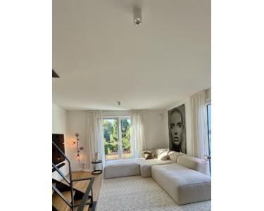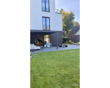 Helles Endhaus mit klarer Architektur, hochwertigen Materialien, großzügigem Garten und einem Wellnessbereich. Viel Licht, offene Ebenen und eine ruhige Lage direkt am Brabandkanal.